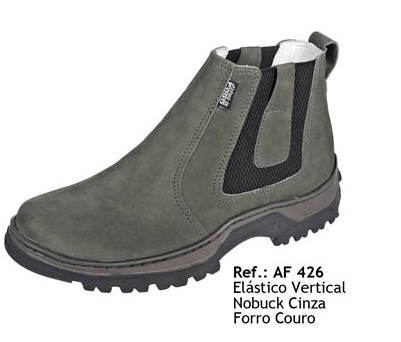 Botina Estrela de Fogo Elástico Vertical Nobuck Cinza Forro Couro