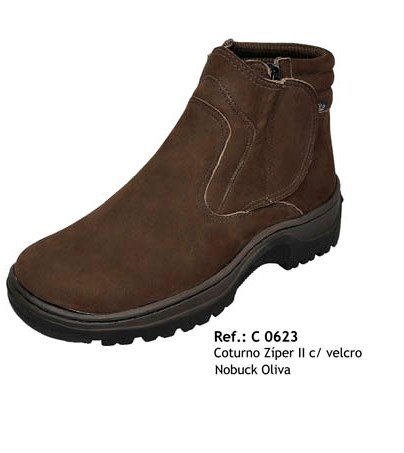 Coturno Estrela de Fogo Zíper c/ Velcro Nobuck Oliva