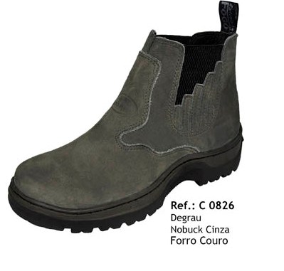 Botina Estrela de Fogo Elástico Degrau Nobuck Cinza Forro Couro